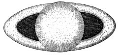 {B-0119.04_.1658} p. 142 ➤ Verso le 10, quando osservai Saturno con il tubo attraverso delle aperture fra le nubi, era arrotondato come un bozzolo, quello da cui si trae il filo di seta. Il diametro più lungo (diretto approssimativamente lungo lo zodiaco) appariva appena più piccolo del diametro di Venere; per essere sicuro, ognuno dei diametri ripetuto 8 o 10 volte appariva circa uguale al diametro dell’apertura del tubo. E invero, nel lato precedente di Saturno l’ansa o piccola appendice appariva piuttosto confusamente, ma nel lato seguente Saturno l’ansa era mostrata in modo interamente distinto; e il tutto fu visto in questa forma e grandezza: …. Certe volte il corpo di Saturno appariva rotondo e senza raggi circondanti le anse su tutti i lati, e altre volte appariva piuttosto confusamente, quando le stesse anse avevano una diffusione simmetrica tutt’attorno ad esso.