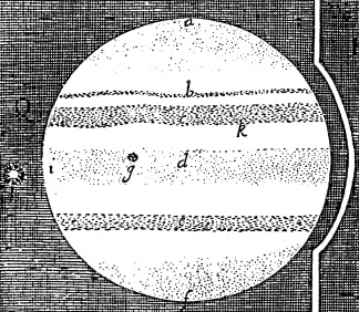 Le prime fasce sulla superficie di Giove furono segnalate a partire dal 1630. Le prime figure apparvero in {B-0023.00_.1646} “Novae coelestium et terrestrium rerum Observationes” (Napoli 1646) di Francesco Fontana: